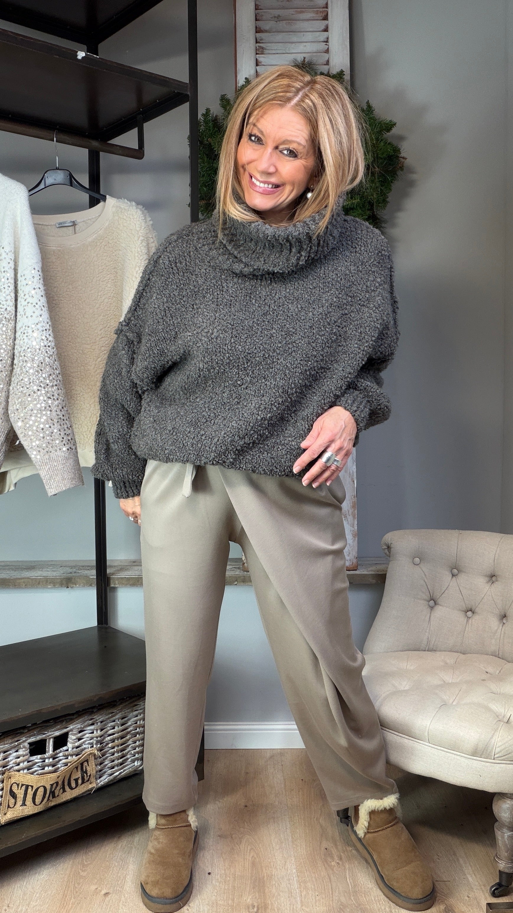 Dieser kuschelige Boucle Rolli besticht durch seine übergroße Passform und das besonders weiche Boucle-Material. Die außenliegende Naht setzt ein modernes Statement und verleiht dem Pullover einen individuellen Look. Perfekt für entspannte Tage, in denen du Komfort und Style kombinieren möchtest – ein Lieblingsstück für deine Garderobe.