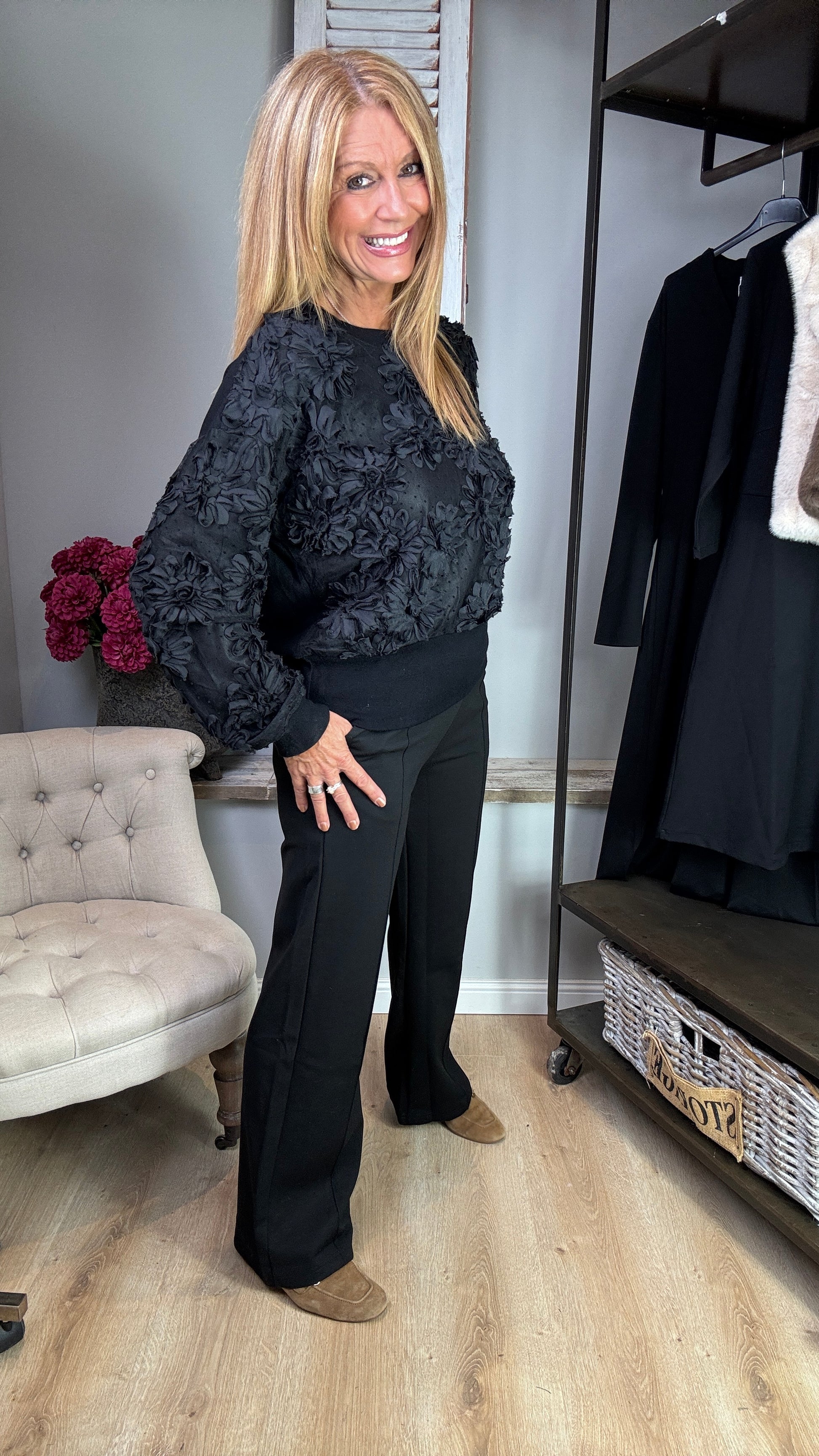 Diese elegante Hose mit geradem, weitem Bein setzt modische Akzente und sorgt für einen entspannten Sitz. Die markante Bügelfalte verleiht deinem Look einen besonders schicken und gepflegten Touch – perfekt für stilbewusste Tage im Büro oder elegante Freizeitmomente.