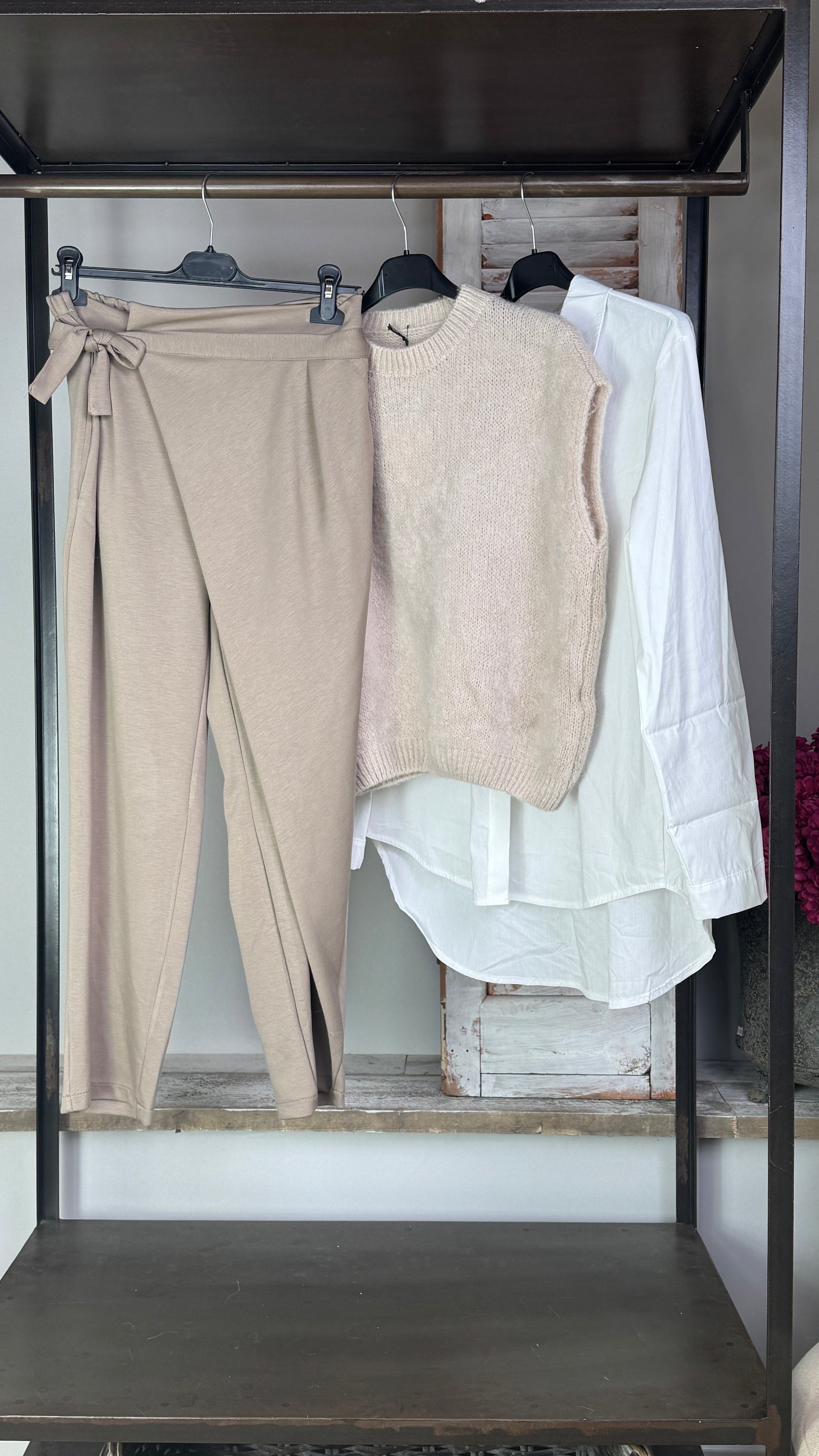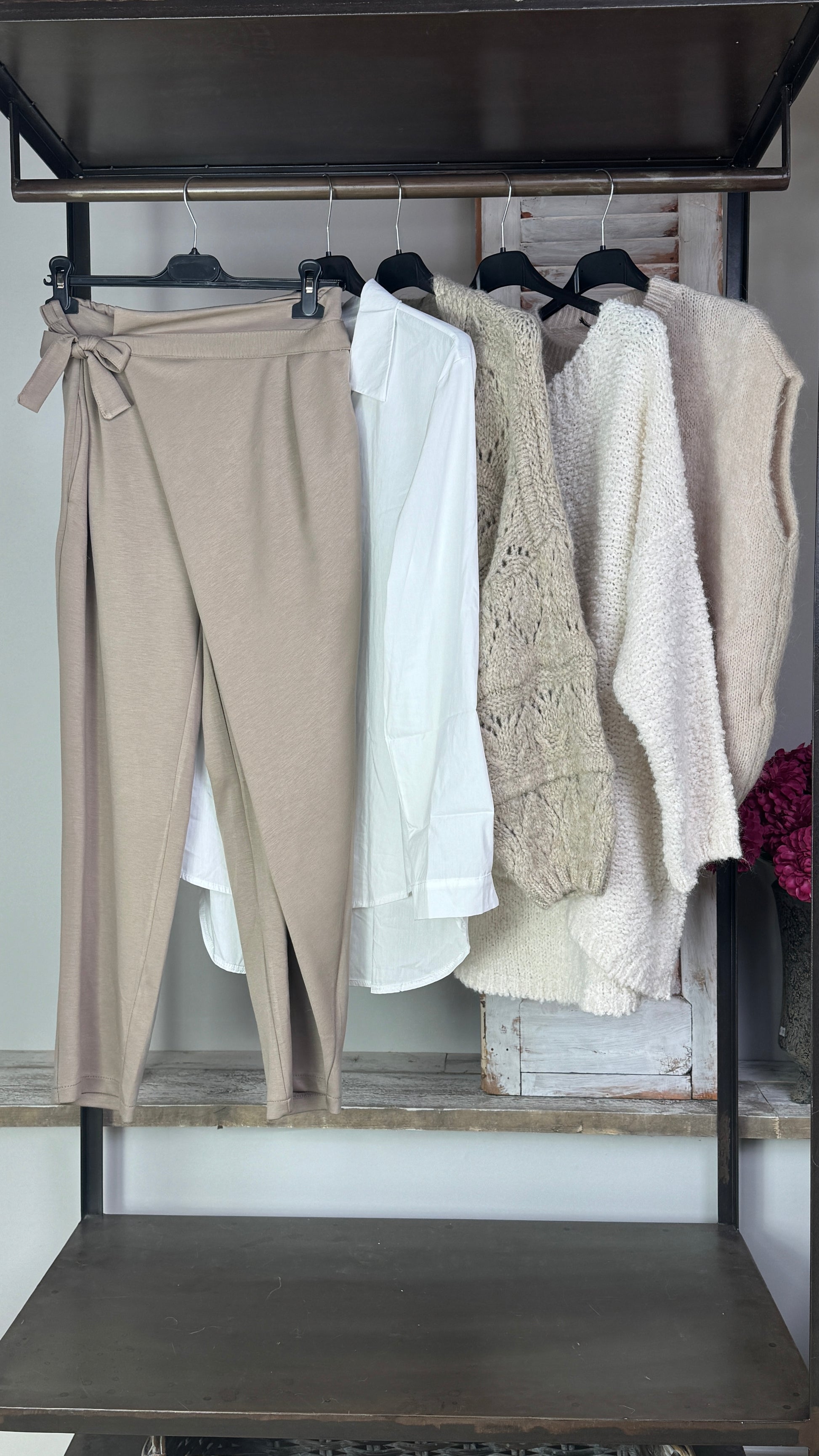 Die Hose "Schleife" überzeugt mit ihrem supersoften Material und dem sportlich-schicken Look. Der Bindeband in der Taille sorgt für eine perfekte Passform, während der Gummizug hinten zusätzlichen Komfort bietet. Ideal für entspannte Tage oder stylische Freizeitlooks.