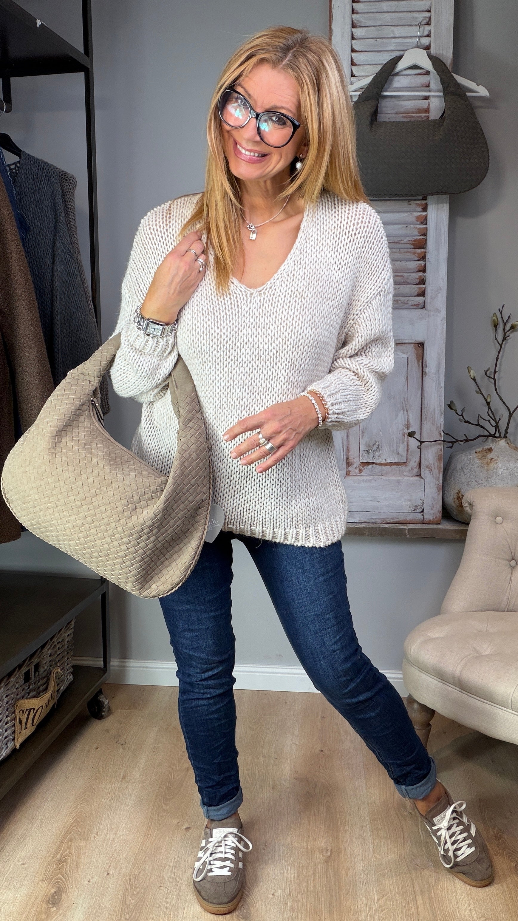 Die Tasche in Flechtoptik verbindet zeitlosen Stil mit vielseitiger Funktion. Ob für den Alltag oder besondere Anlässe – ihr geflochtenes Design macht sie zum echten Hingucker und verleiht deinem Look eine natürliche Eleganz. Praktisch und schön zugleich, begleitet sie dich überallhin.